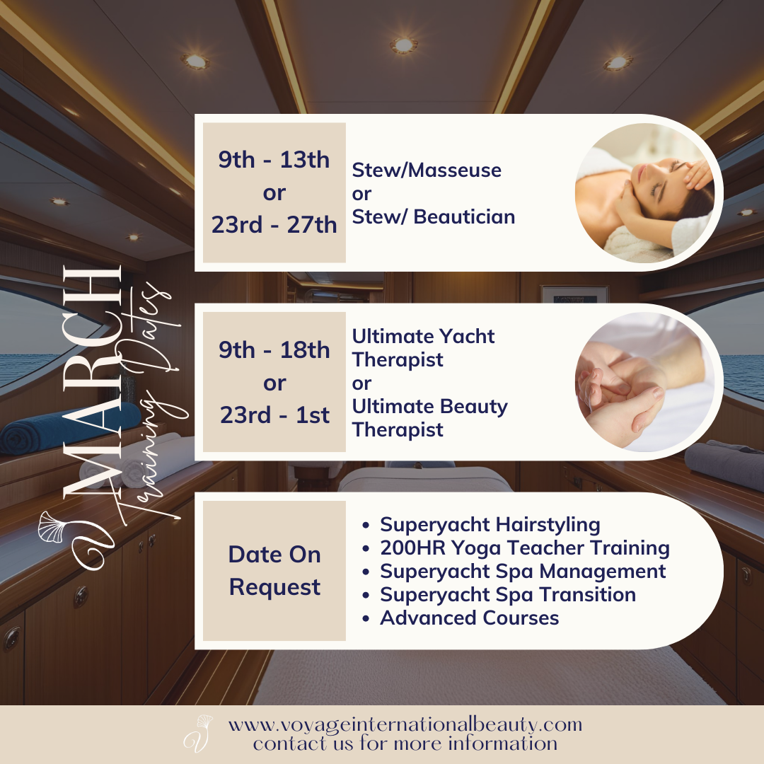 Voyage International Beauty, an IAMI GUEST and ITEC accredited academy, offers elite Superyacht Spa Training and Spa Therapist Upskill Courses, designed to advance careers in the luxury yachting and wellness industry.
